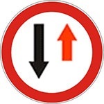 Znak prvenstvo prolaza za vozila iz suprotnog smera označava zabranu stupanja vozila na uski deo puta pre nego što tim delom pređu vozila iz suprotnog smera.