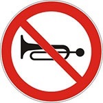 Znak zabrana davanja zvučnih znakova označava put ili deo puta na kome se uređajem na vozilu ne smeju davati zvučni znakovi, osim u slučaju neposredne opasnosti.