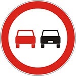 Znak zabrana preticanja za sva vozila na motorni pogon, osim motocikla sa dva točka bez prikolice i mopeda, označava put, odnosno deo puta na kome je zabranjeno da motorna vozila pretiču druga motorna vozila, osim motocikla sa dva točka bez prikolice i mopeda.