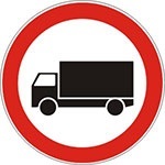 Znak zabrana saobraćaja za teretna vozila označava put odnosno deo puta na kome je zabranjen saobraćaj za teretna vozila. Ako je znaku pridodata dopunska tabla na kojoj je označena najveća dozvoljena masa vozila, zabrana važi samo za ona teretna vozila čija najveća masa prelazi označenu masu.