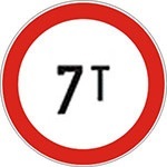 Znak zabrana saobraćaja za vozila čija ukupna masa prelazi određenu masu označava put ili deo puta na kome je zabranjen saobraćaj za vozila, odnosno skupove vozila, čija ukupna masa prelazi masu označenu na znaku.