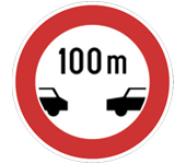 Znak najmanje odstojanje između vozila označava najmanje odstojanje između vozila u kretanju.