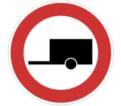 Znak zabrana saobraćaja za motorna vozila koja vuku priključno vozilo osim poluprikolice označava da je zabranjen saobraćaj za motorna vozila koja vuku priključno vozilo, osim poluprikolice.