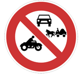 Znak zabrana saobraćaja za sva motorna vozila i zaprežna vozila označava put, odnosno deo puta na kome je zabranjen saobraćaj za sva motorna vozila i zaprežna vozila.