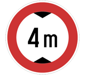 Znak zabrana saobracaja za vozila cija ukupna visina prelazi određenu visinu označava put, odnosno deo puta na kome je zabranjen saobraćaj za vozila čija ukupna visina prelazi visinu označenu na znaku.