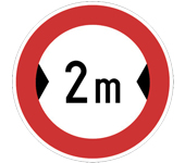Znak zabrana saobračaja za vozila čija širina prelazi određenu širinu označava put, odnosno deo puta na kome je zabranjen saobraćaj za vozila čija širina prelazi širinu označenu na znaku.