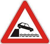 Znak blizina obale označava blizinu mesta na kome put nailazi na obalu.