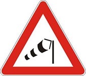 Znak bočni vetar označava blizinu dela puta na kome često duva jak bočni vetar sa desne strane.