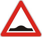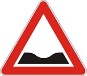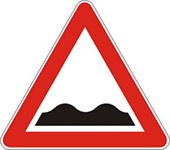Znak neravan kolovoz – blizina dela puta na kome je kolovoz neravan zbog postojanja opasnih izbočina i ulegnuca.