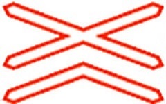Znak Andrejin krst označava mesto na kome put prelazi preko železničke pruge u nivou bez branika ili polubranika sa dva ili više koloseka.