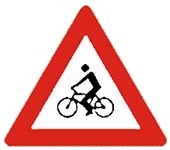 Znak Biciklisti na putu označava blizinu mesta na kome biciklisti češće nailaze na put ili ga prelaze.