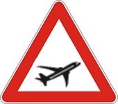 Znak blizina avionske piste označava deo puta preko koga avioni preleću u niskom letu prilikom sletanja, odnosno uzletanja.