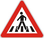 Označava blizinu mesta na putu na kome se nalazi obeleženi pešački prelaz.