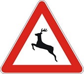 Znak divljač na putu označava posebno opasno mesto na kojima divljač (papkari) često prelazi preko puta.