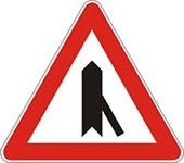 Označava blizinu raskrsnice na kojoj se put sa prvenstvom prolaza spaja sa sporednim putem pod ostrim uglom sa desne strane.