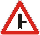 Označava blizinu raskrsnice na kojoj se put sa prvenstvom prolaza spaja sa sporednim putem pod pravim uglom sa leve strane.