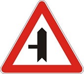 Označava blizinu raskrsnice na kojoj se put sa prvenstvom prolaza spaja sa sporednim putem pod tupim uglom sa desne strane.