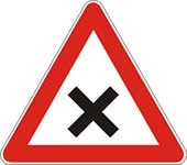 Znak ukrštanje puta sa železničkom prugom bez branika ili polubranika označava blizinu prelaza puta železničke pruge u nivou, koji nije obezbeđen branicima ili polubranicima