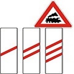 Znak sa tri kose pruge postavlja se na 240 metara od prelaza, znak sa dve kose pruge na 160 metara, a znak sa jednom kosom prugom na 80 metara. Niža strana kosih pruga je bliža putu.